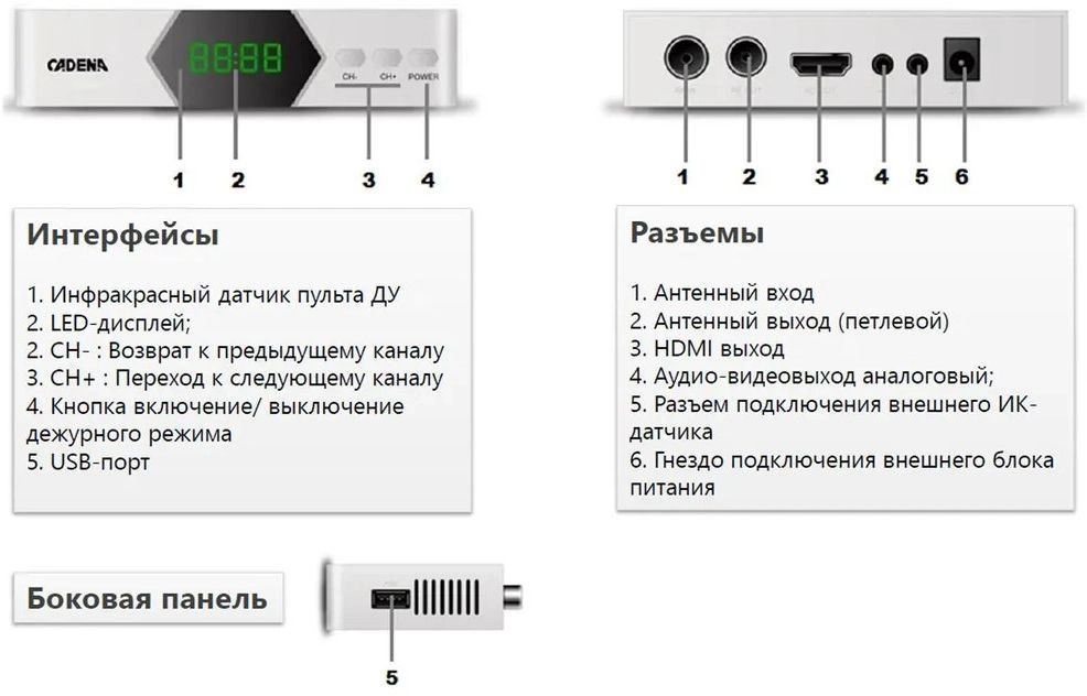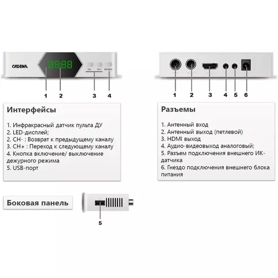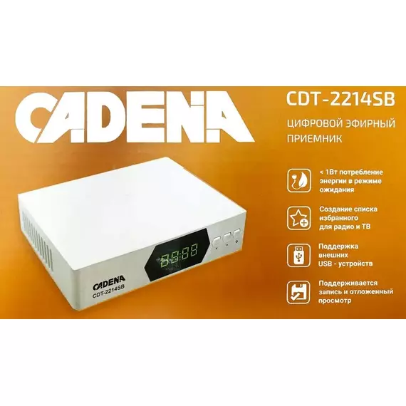 Ресивер Cadena CDT-2214SB DVB-T2 белый [046/91/00055107]