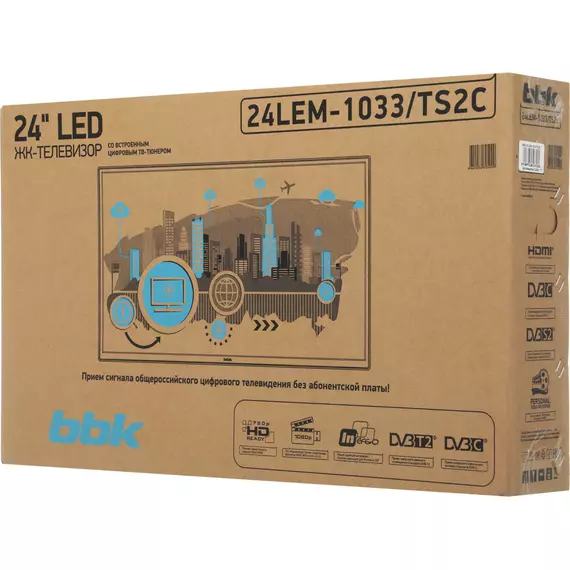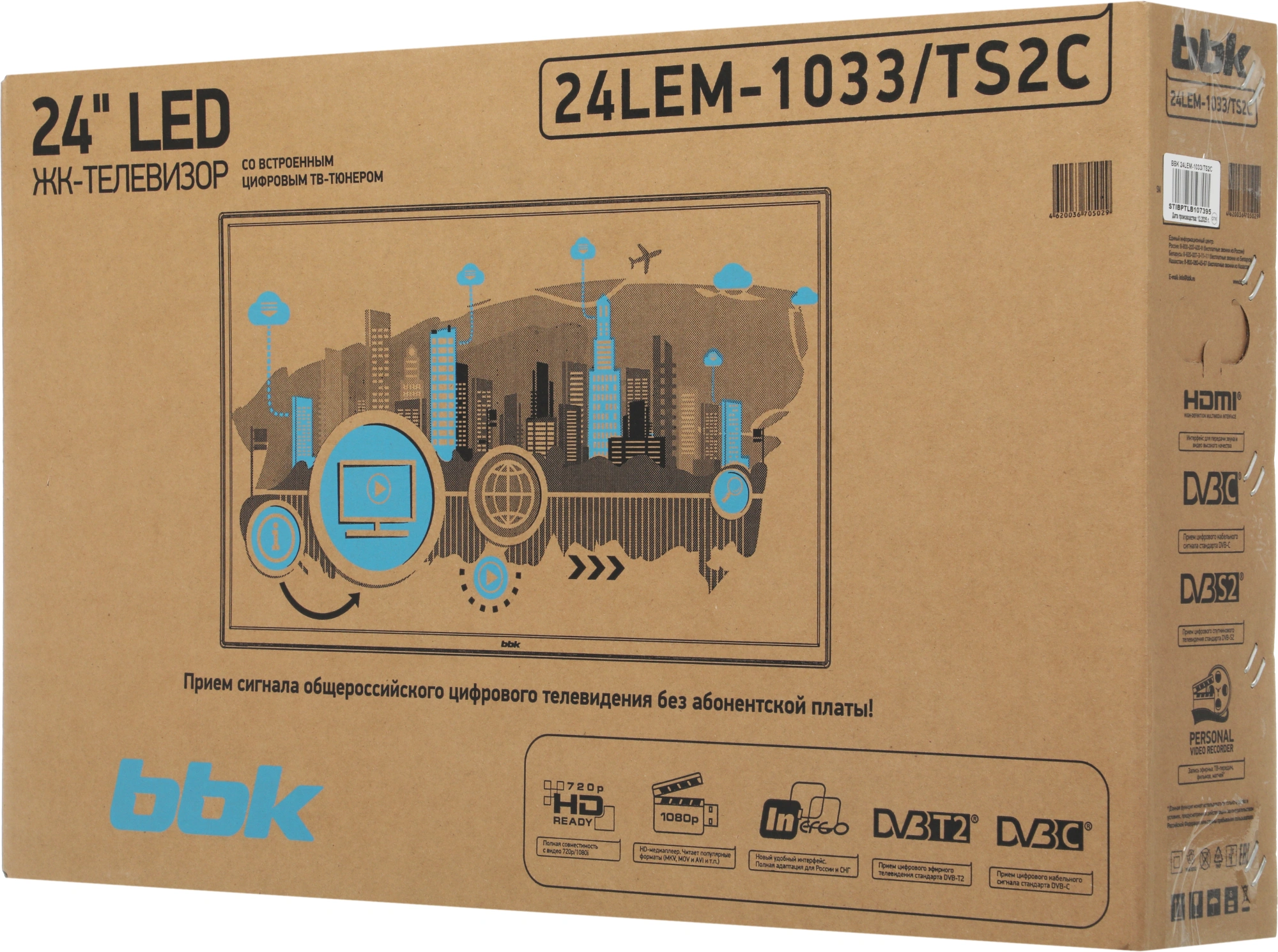 Телевизор LED BBK 24LEM-1033/TS2C (B) 24", Frameless черный, HD 60Hz, DVB-T2, DVB-C, DVB-S2, USB, RUS