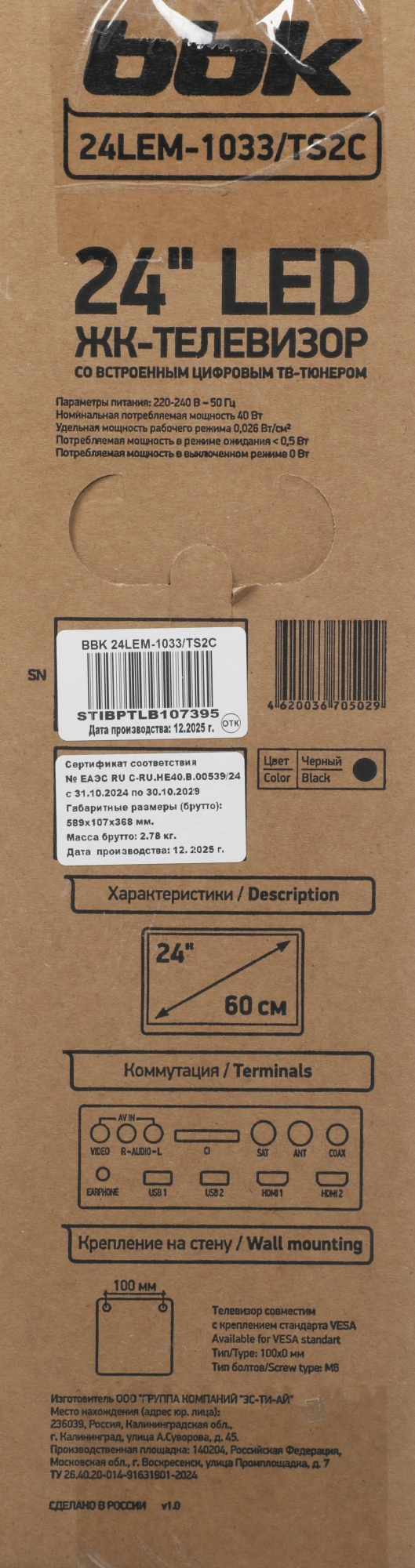 Наличие товара BBK 24LEM-1033/TS2C (B)