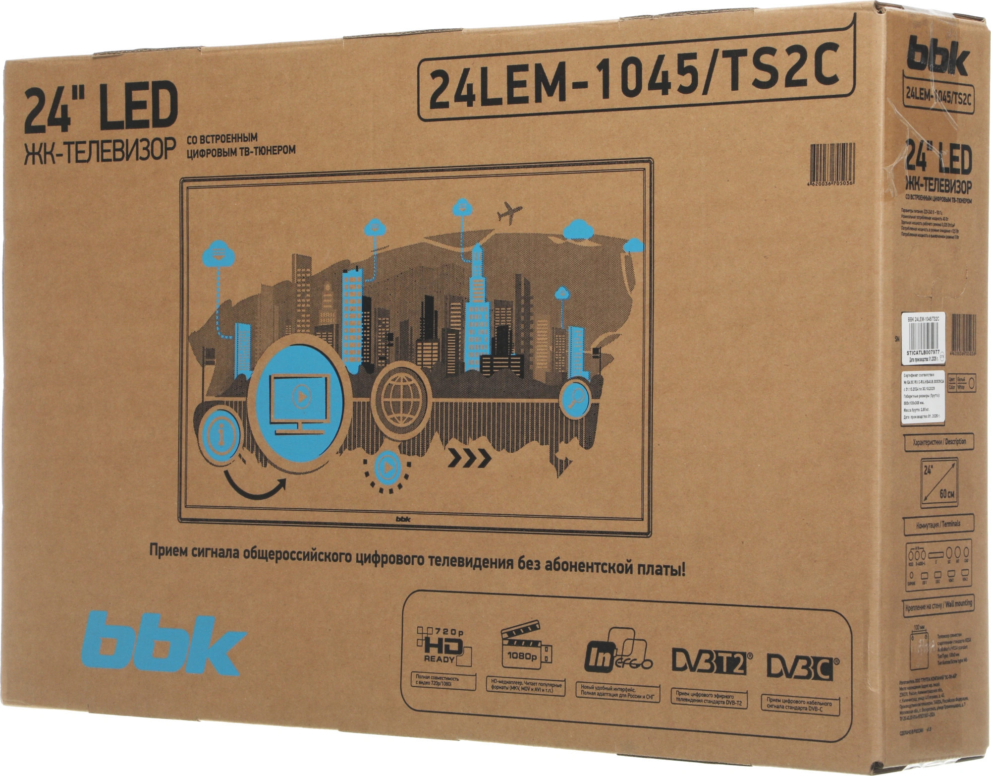 Телевизор LED BBK 24LEM-1045/TS2C (W) 24" HD 60Hz DVB-T2 DVB-C DVB-S2 USB (RUS)