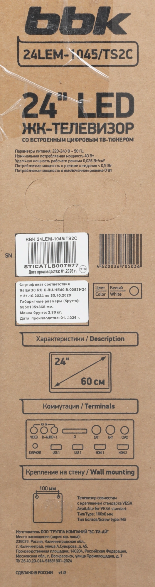 Наличие товара BBK 24LEM-1045/TS2C (W)