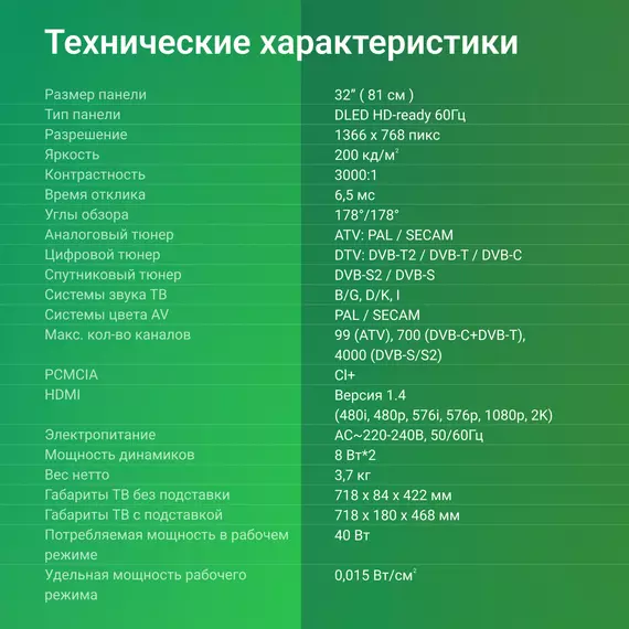| Диагональ экрана (дюймы) | 32 " |