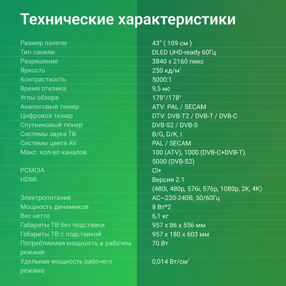 | Размеры без подставки | 956.5x555.9x86.1мм |