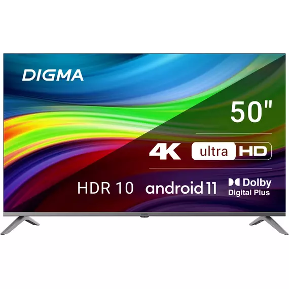 Телевизор Digma DM-LED50UBB41 LED 50" Android TV Frameless Metal темно-серебристый/серебристый 4K Ultra HD 60Hz DVB-T DVB-T2 DVB-C DVB-S DVB-S2 USB WiFi Smart TV