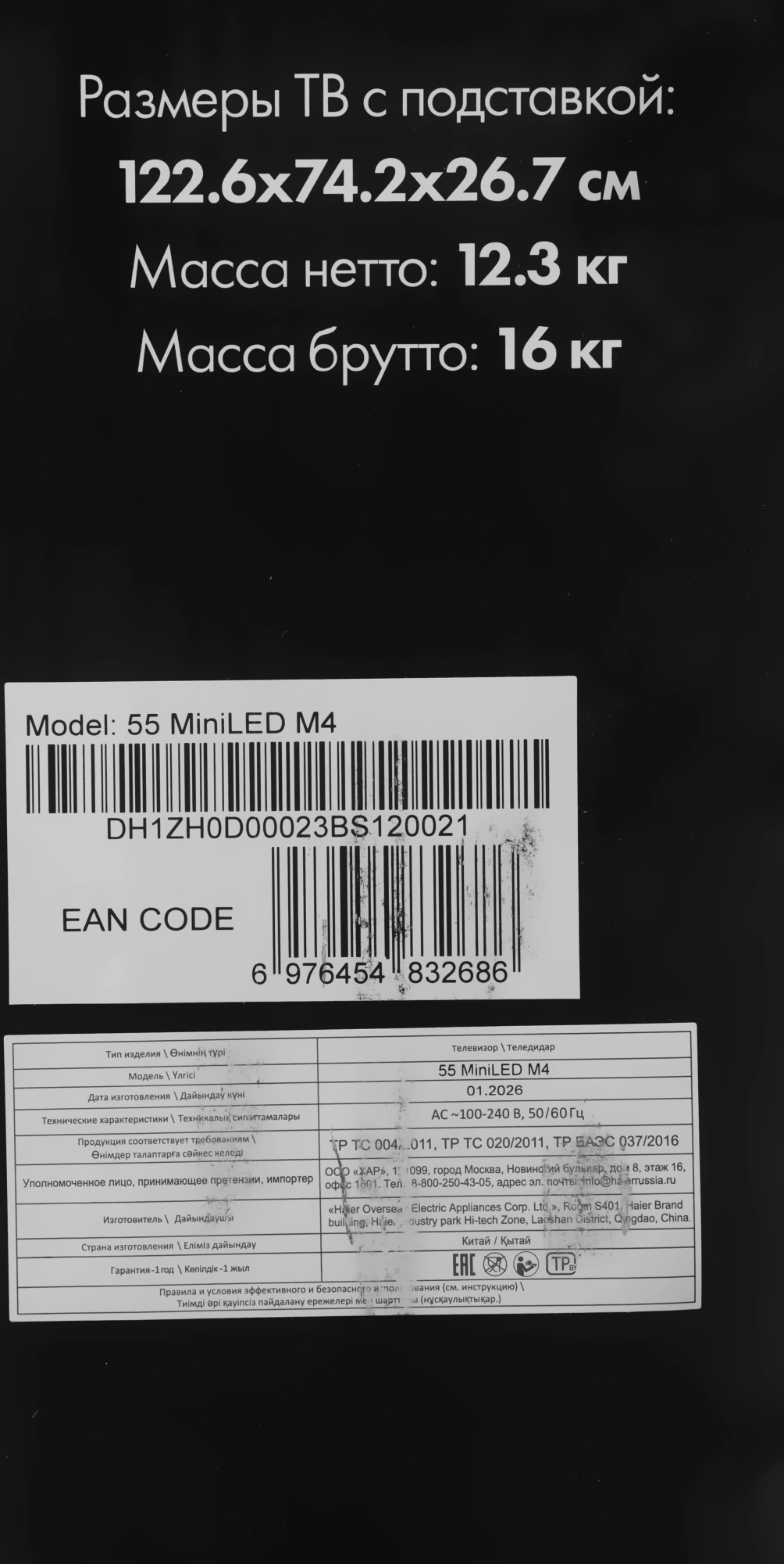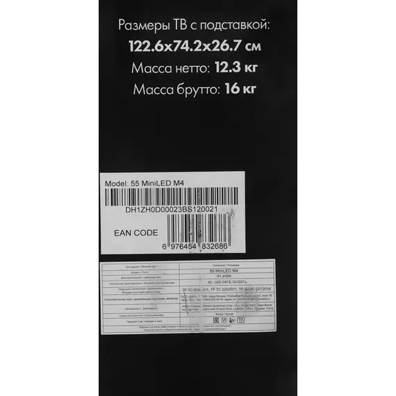 | Размеры без подставки | 1226x712x81мм |