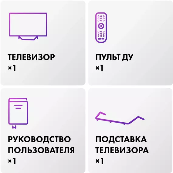 | Комплектация | Пульт, подставка, шнур питания, руководство пользователя, гарантийный талон |