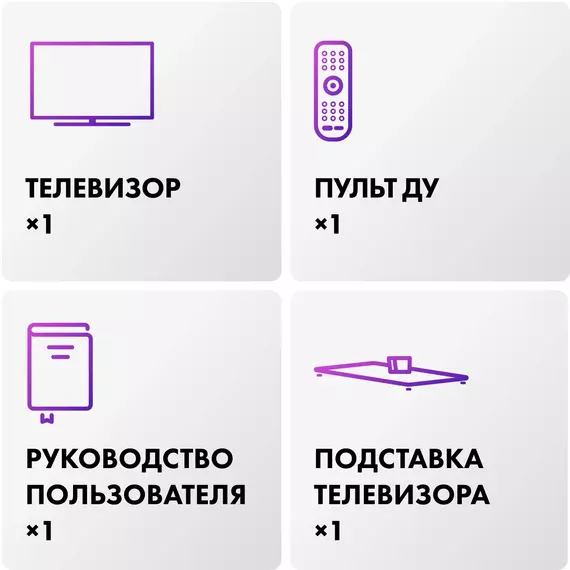 | Комплектация | Пульт, подставка, руководство пользователя, гарантийный талон |