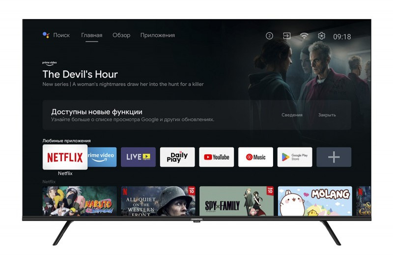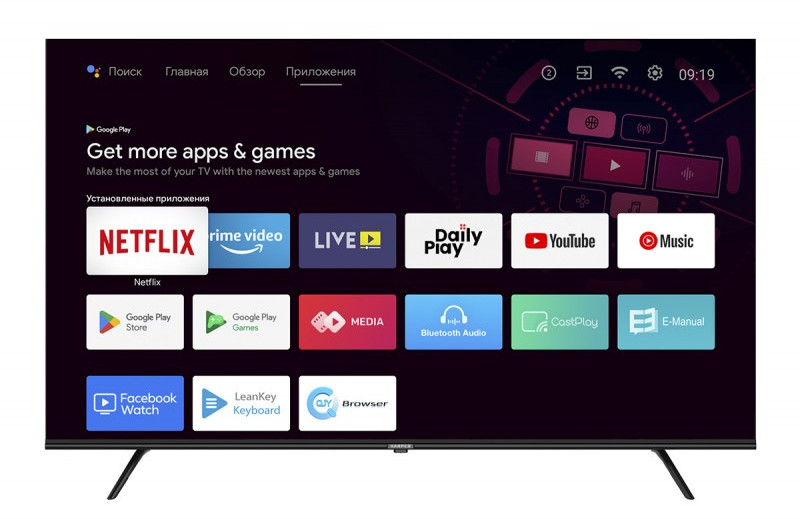 - Стабильно принимать сигналы цифрового и кабельного вещания позволяют встроенные цифровые тюнеры, а с помощью функции SMART TV, на базе современной Official Google Android 10 версии, вы сможете не зависеть от программы вещания, и в любое удобное время смотреть фильмы, сериалы и развлекательные шоу в сети интернет