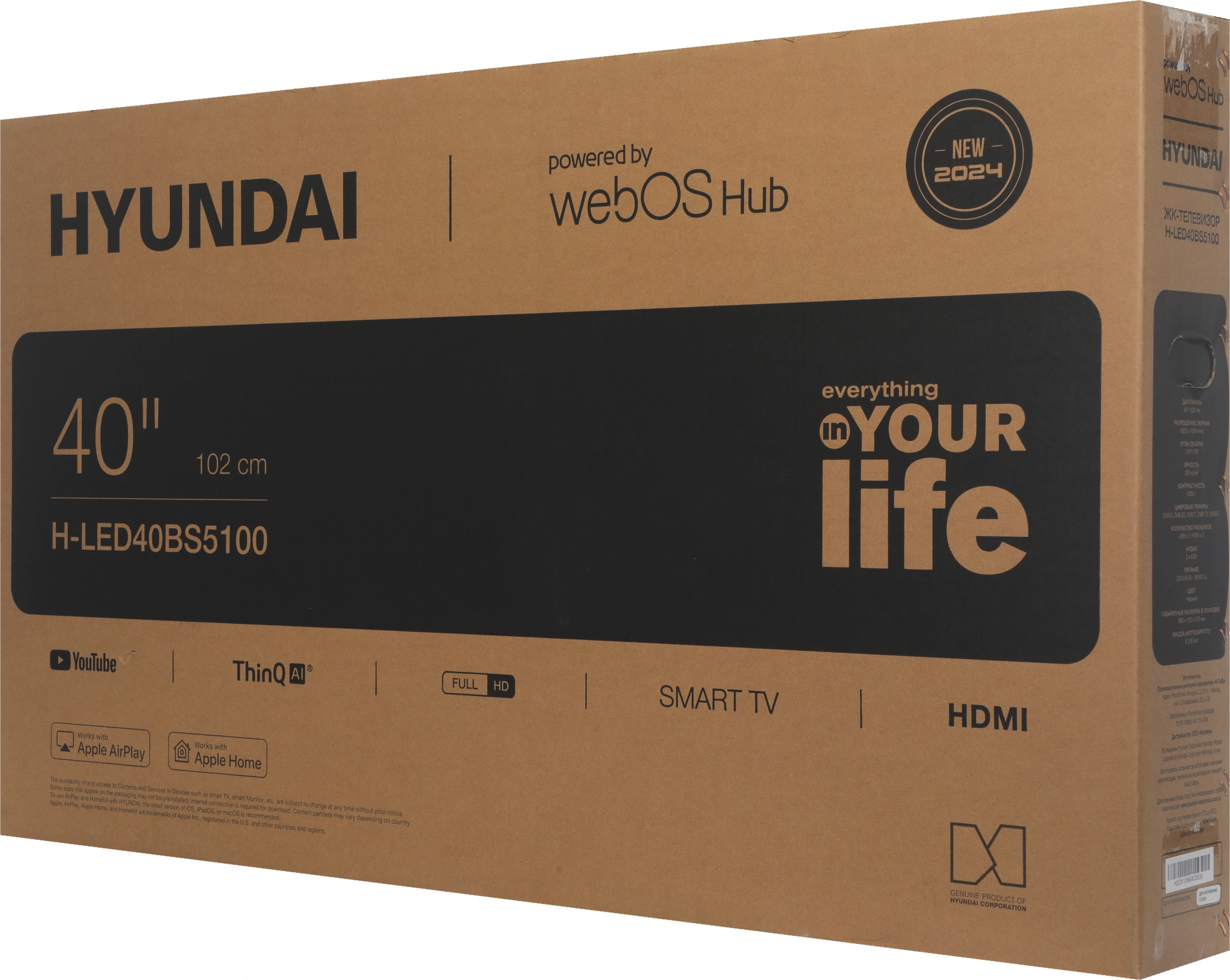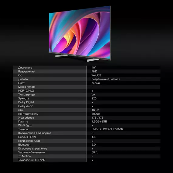 Телевизор Hyundai H-LED40BS5100 LED 40" WebOS Frameless Metal черный/серый FULL HD 60Hz DVB-T DVB-T2 DVB-C DVB-S DVB-S2 USB WiFi Smart TV