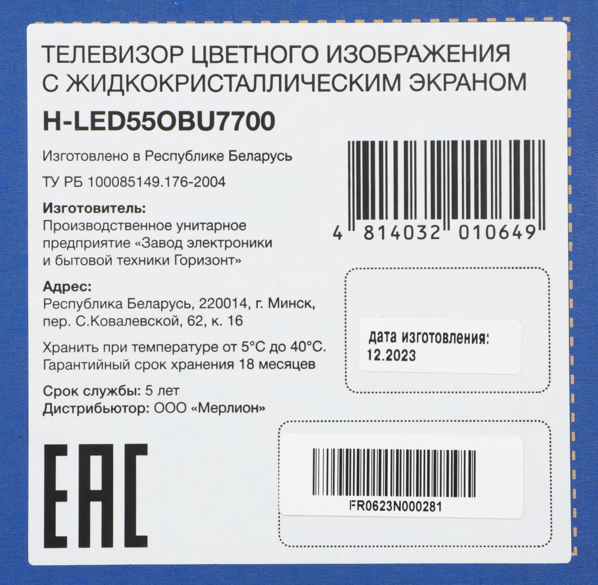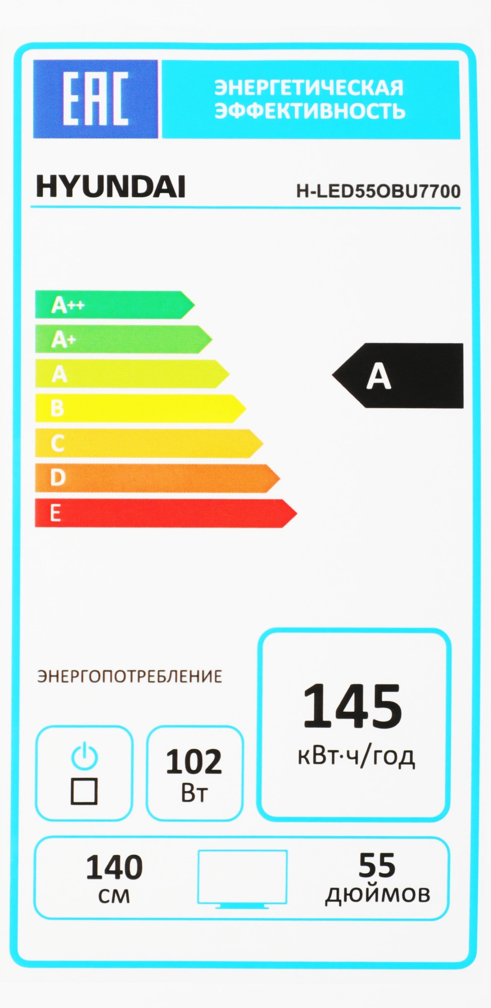 Телевизор Hyundai H-LED55OBU7700 OLED 55" Android TV Frameless черный/черный 4K Ultra HD 120Hz DVB-T DVB-T2 DVB-C DVB-S DVB-S2 USB WiFi Smart TV