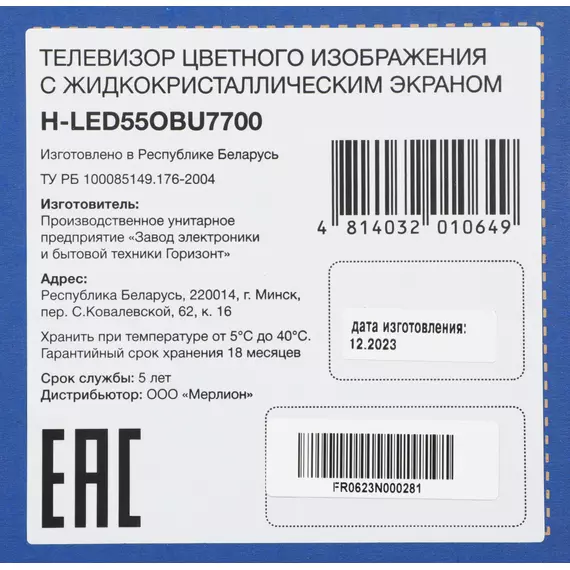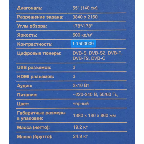 | Энергопотребление в режиме ожидания | 0.5 Вт |