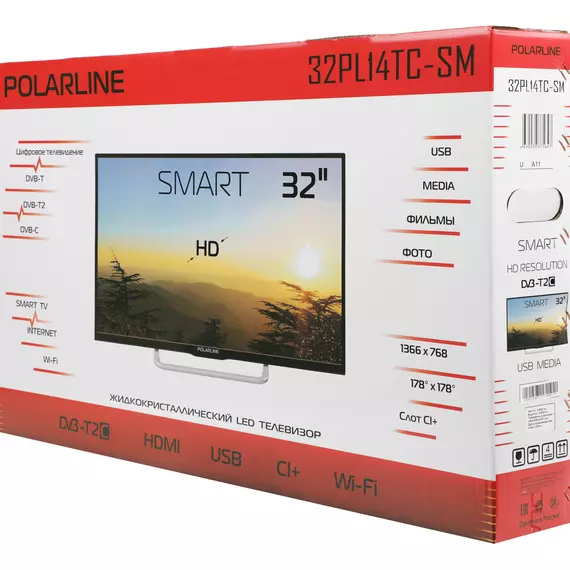 Телевизор Polarline 32PL14TC-SM LED 32" черный HD 50Hz DVB-T DVB-T2 DVB-C WiFi Smart TV