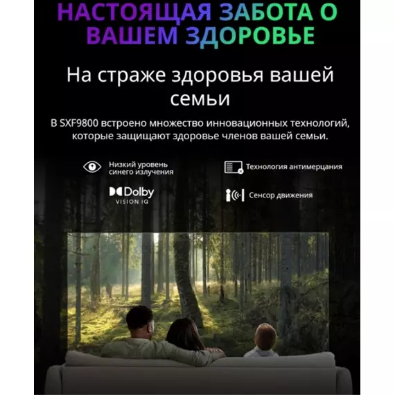 | Особенности | Технология MEMC, Технология VRR, Freesync Premium (AMD), Датчик Движения Motion Sensor, Датчик окружающего освещения, Антибактериальный ПДУ, Режим Кинопроизводителя, Технологии защиты зрения: Low Blue Light (сниженный синий свет), Flicker Free (антимерцание), Ночной Режим |