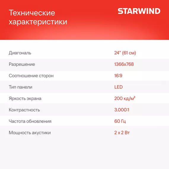 Телевизор LED STARWIND SW-LED24SG304 24" Яндекс.ТВ Slim Design черный/черный HD 60Hz DVB-T DVB-T2 DVB-C DVB-S DVB-S2 USB WiFi Smart TV