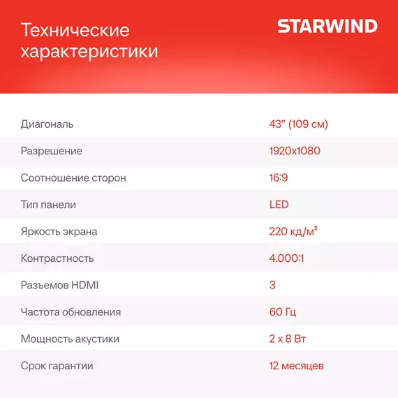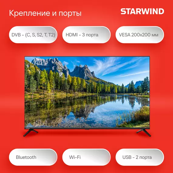 Телевизор LED STARWIND SW-LED43SG300 43" Яндекс.ТВ Frameless черный FULL HD 60Hz DVB-T DVB-T2 DVB-C DVB-S DVB-S2 USB WiFi Smart TV