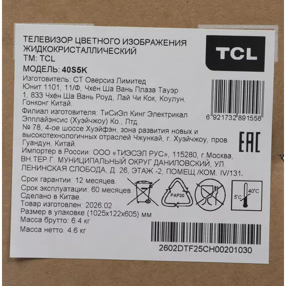 | Энергопотребление в режиме ожидания | 0.5 Вт |
