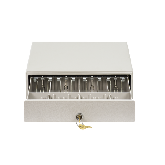 Компактный денежный ящик создан специально для кассовых мест с ограниченным рабочим пространством. Он идеально подходит для установки в магазинах у дома, небольших кафе и заведениях стрит-фуд, на островках в торговых центрах.