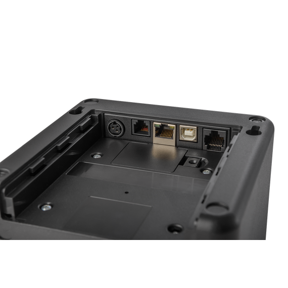 - Все интерфейсы закрыты крышкой для дополнительной защиты и эстетичности кассы. Вывод проводов оборудован так, что их невозможно случайно выдернуть, если сдвинуть или уронить кассу.