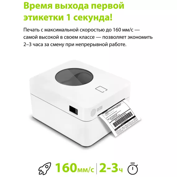 Термопринтер Cactus CS-TP-D410U-W 203dpi 160мм/с USB для печ.этик. белый
