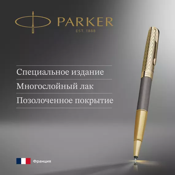 Ручка роллер Parker Sonnet Pioneers T542 Arrow Grey GT F черная, подарочная коробка [2201040]