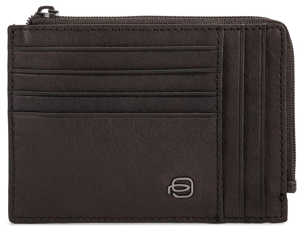 Чехол для кредитных карт от компании Piquadro, коллекция Black Square. Натуральная телячья кожа темно-коричневого цвета.
