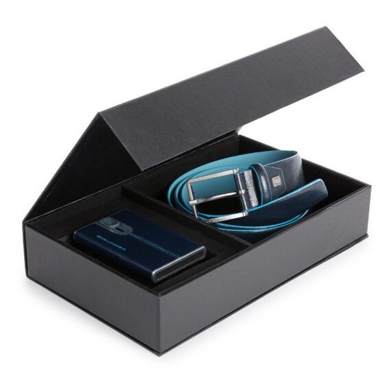 Набор подарочный мужской Piquadro Blue Square ремень/чехол для кредитных карт синий натур.кожа [CUBOX15B2R/BLU2]