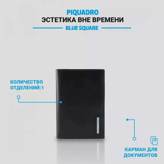 Обложка для документов Piquadro Blue Square черный натур.кожа [PP5256B2/N]