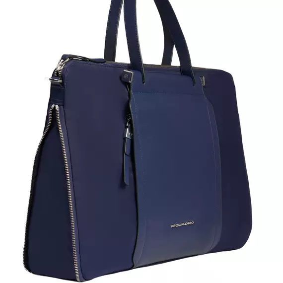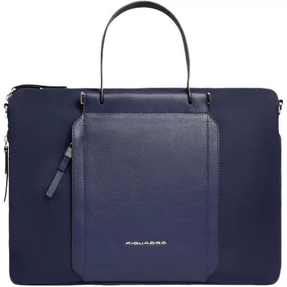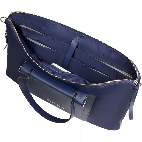 Деловая сумка женская Piquadro Lyra с отделением для ноутбука 15.6" темно-синяя нейлон/натур.кожа [CA4021W92T/BLU]