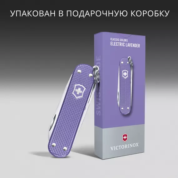Нож перочинный Victorinox Classic SD Alox Electric Lavender 58мм 5функц. подар.коробка [0.6221.223G]
