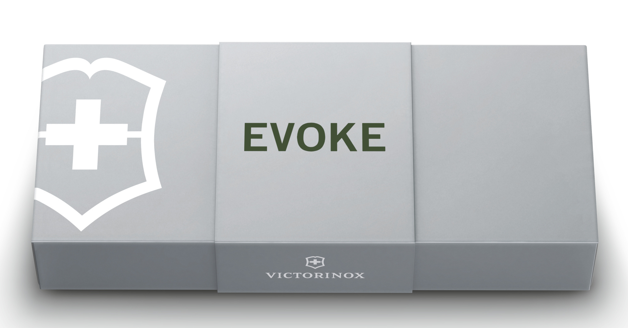 Evoke стал более удобным и функциональным, чем его предшественник. Клинок формы clip-point выполнен из устойчивой к коррозии стали, на его поверхность нанесено чёрное матовое покрытие, которое обеспечивает дополнительную защиту.