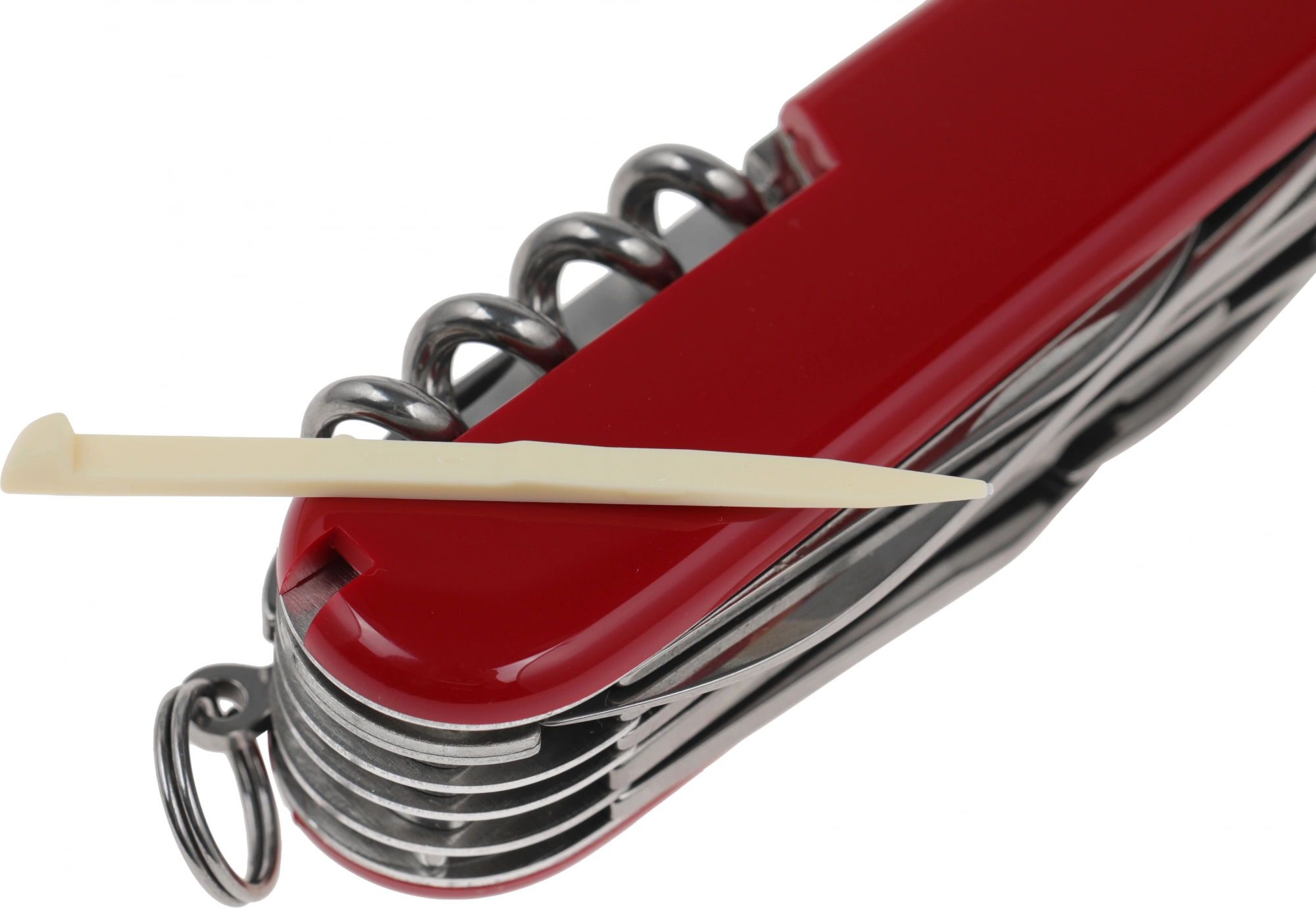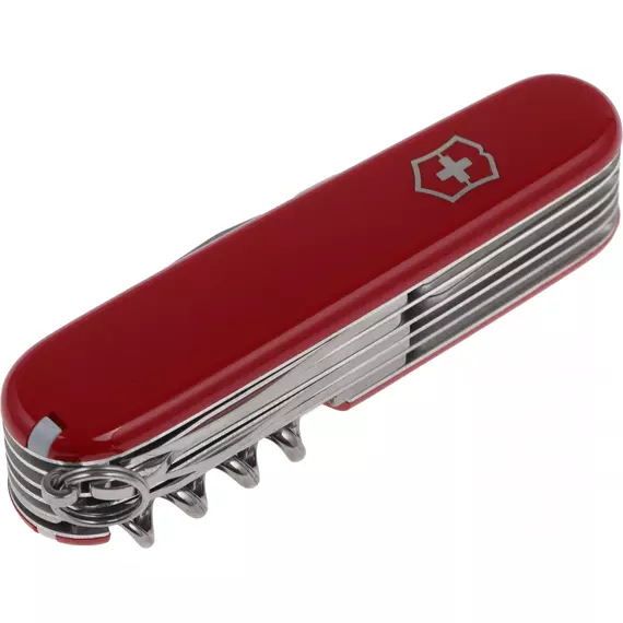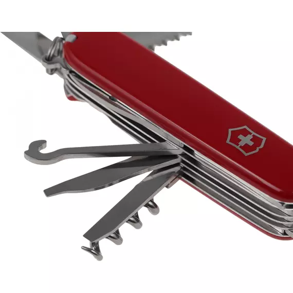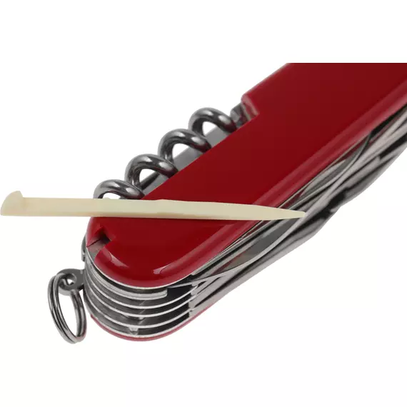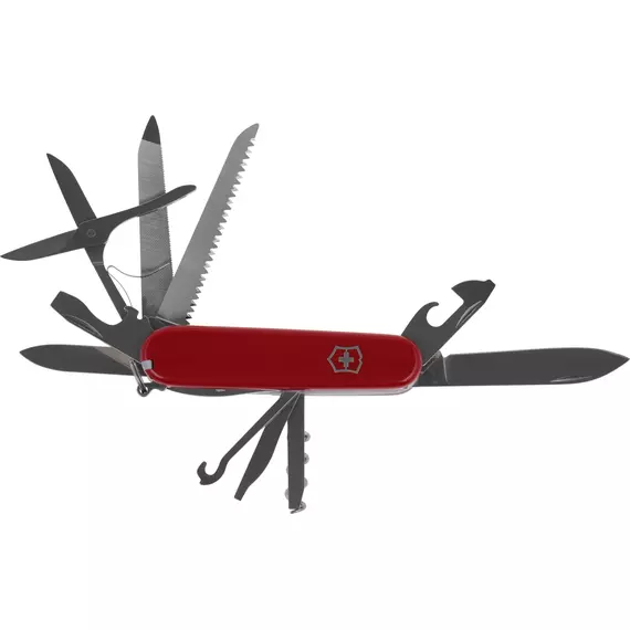 | Список функций | Нож, малый нож, пила, стамеска, напильник, ножовка по металлу, консервный нож, штопор, открывалка, 3 отвертки, сниматель изоляции, шило (кернер), кольцо для ключей, пинцет, зубочистка, ножницы, крючок, пилка для ногтей, инструмент для чистки ногтей. |