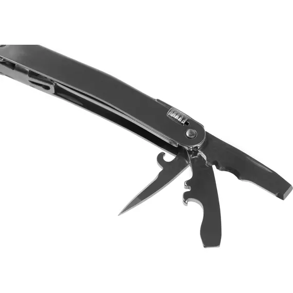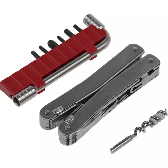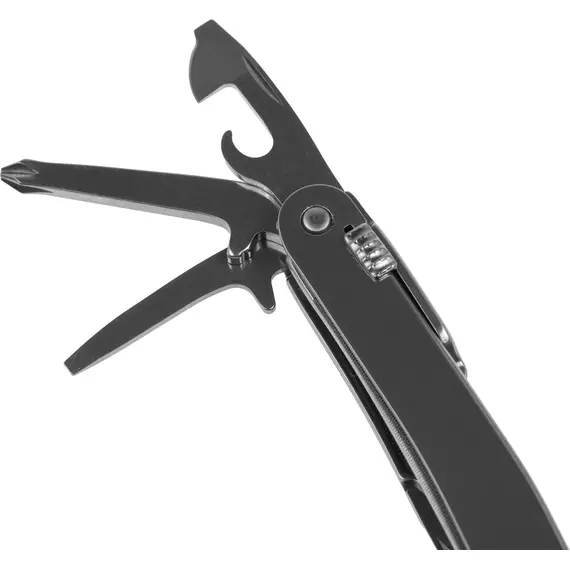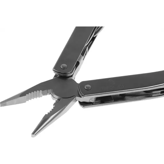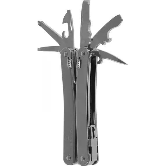 Мультитул VICTORINOX SwissTool Spirit X Plus 35 функций: острогубцы с: кусачками для тонк. и мяг.проволоки твердостью до 40 HRC, кусачками для твердой проволоки, отвертка 2 мм., консервный нож с: отверткой 3 мм., открывалка для бутылок с: отверткой 6 мм., фомкой, инструментом для сгибания проволоки.