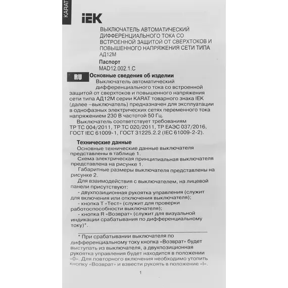 Описание IEK MAD12-2-016-C-030