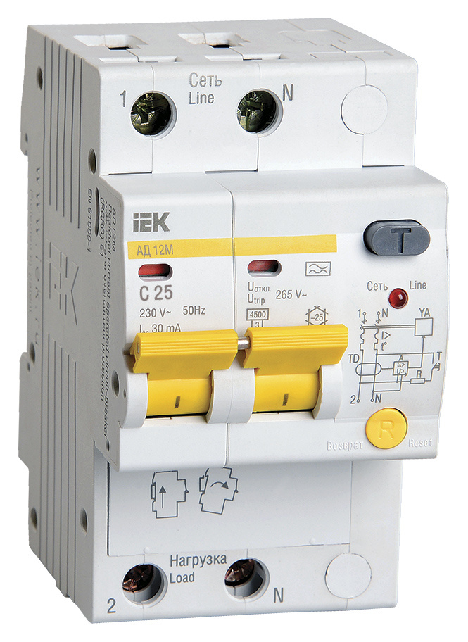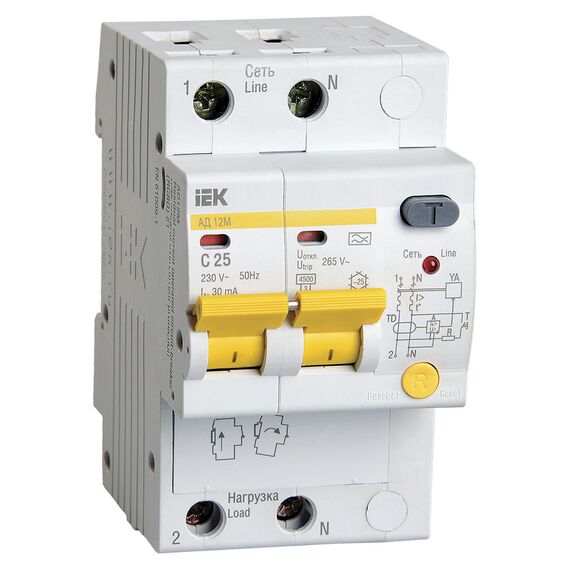 Выключатель IEK MAD12-2-025-C-030 автом. дифф. тока 25A тип C 4.5kA 30мА A 2П 230В 3мод белый
