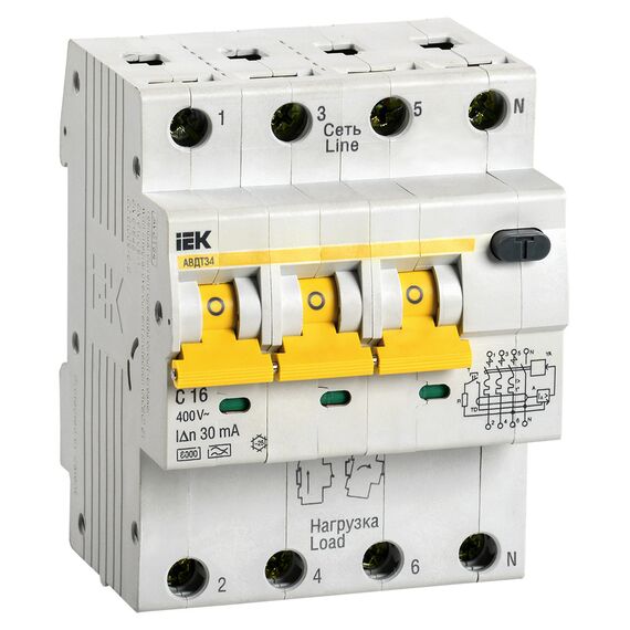 Выключатель IEK MAD22-6-016-C-30 автом. дифф. тока 34 16A тип C 6kA 30мА A 4П 400В 4мод белый