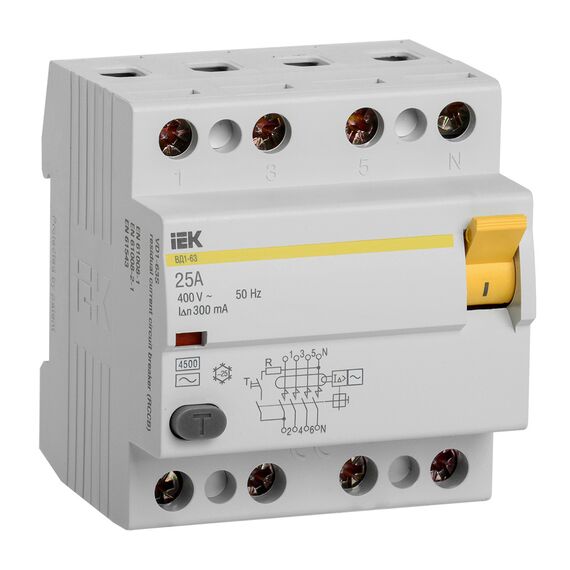 Выключатель дифф.тока IEK MDV10-4-025-300 25A 300мА AC 4П 400В 4мод белый