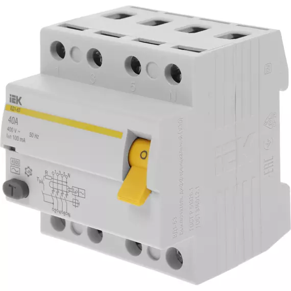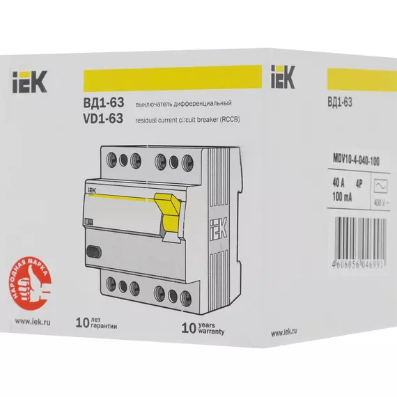 Выключатель дифф.тока IEK MDV10-4-040-100 40A 100мА AC 4П 400В 4мод белый