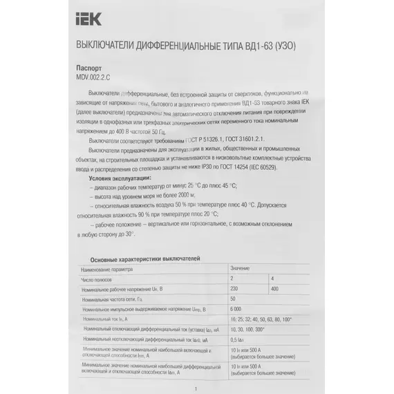 | Тип | Выключатель дифф. тока (УЗО) |