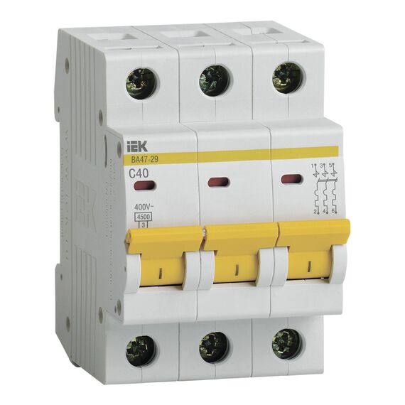 Выключатель автоматический IEK MVA20-3-040-C 40A тип C 4.5kA 3П 400В 3мод белый