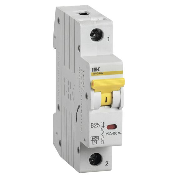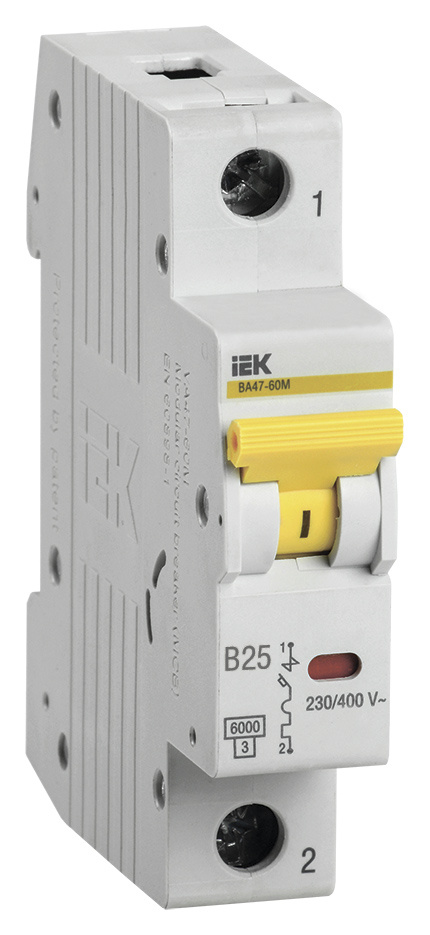 Выключатель автоматический IEK MVA31-1-025-B 25A тип B 6kA 1П 230/400В 1мод белый
