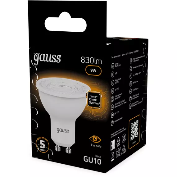 Лампа светодиодная Gauss 9Вт цок.: GU10 рефлек. 220B св.свеч.бел.теп. MR16 [101506109]