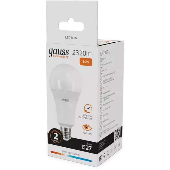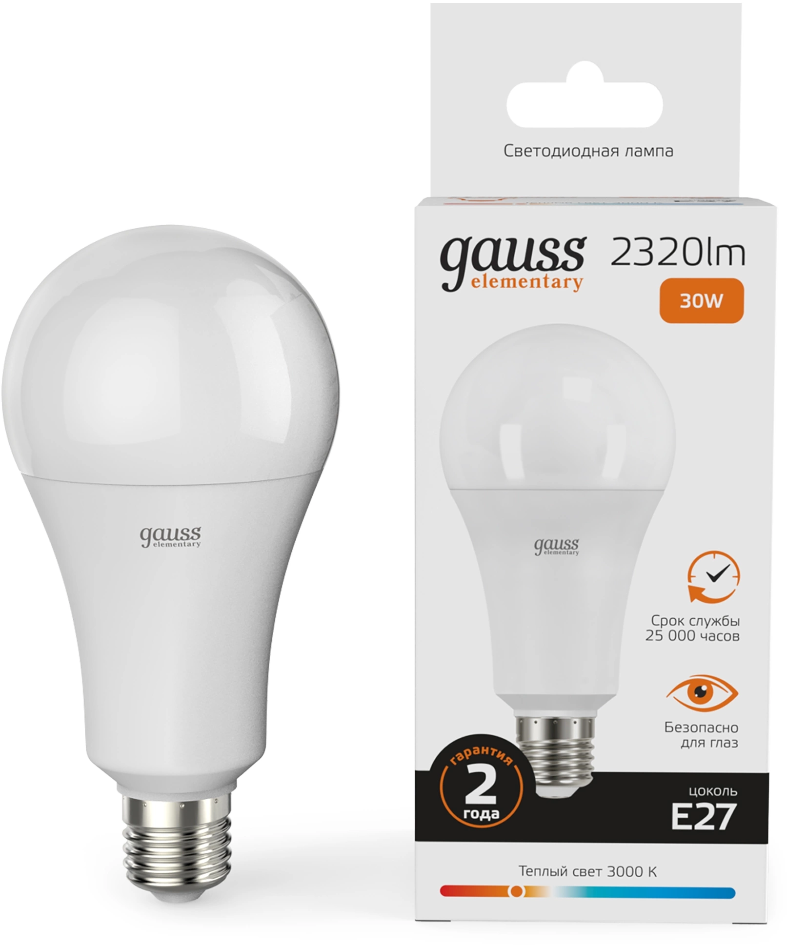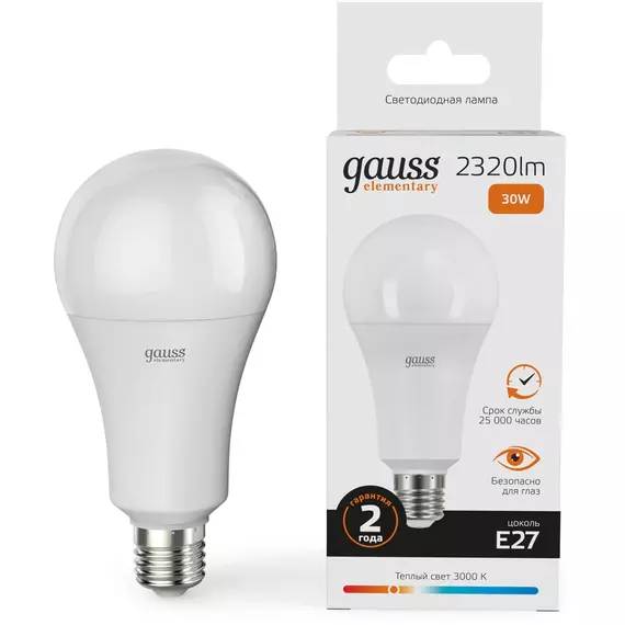 Лампа светодиодная Gauss Elementary A67 30Вт цок.:E27 груша 220B св.свеч.бел.теп. [73219]