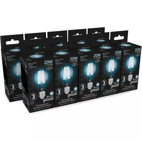 Лампа светодиодная Gauss Filament 20Вт цок.:E27 груша 220B св.свеч.бел.нейт. [102902220]