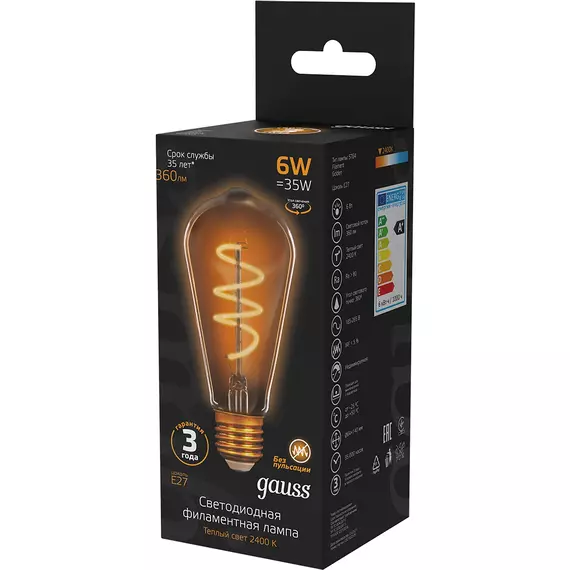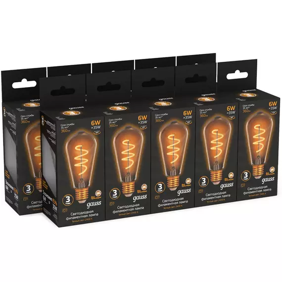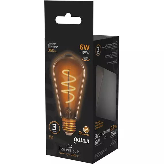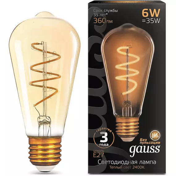 Лампа филаментная Gauss Filament ST64 6Вт цоколь E27 эдисон 220B св.свеч.бел.теп. упаковка 10 шт [157802006]
