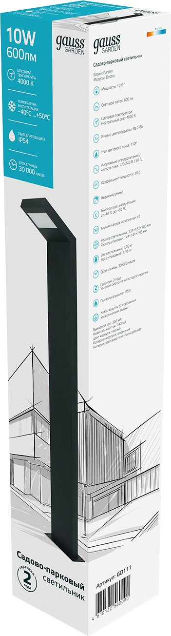 Светильник садово-парковый Gauss GD111 10Вт черный