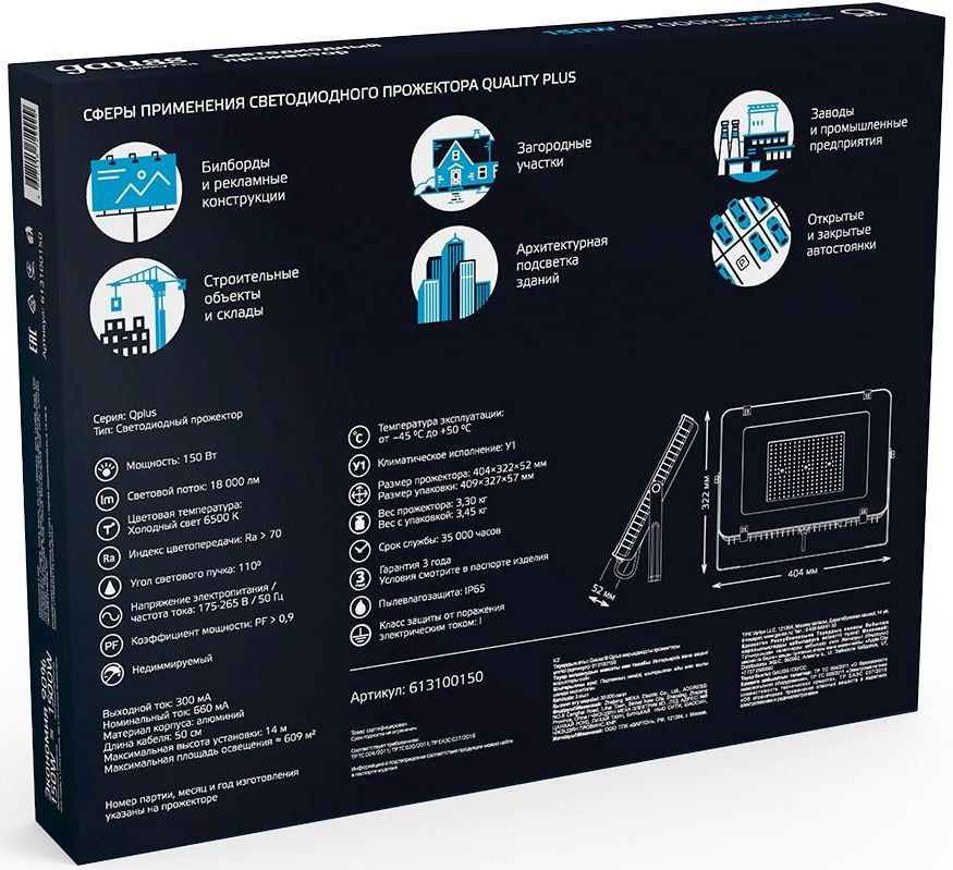 Прожектор уличный светодиодный Gauss Qplus 150Вт черный [613100150]