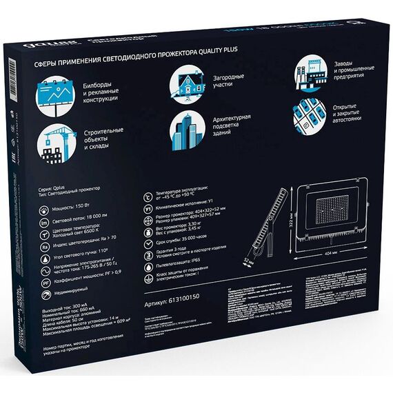 | Назначение | Освещение придомовых, производственных и складских территорий, рекламных и архитектурных конструкций. |