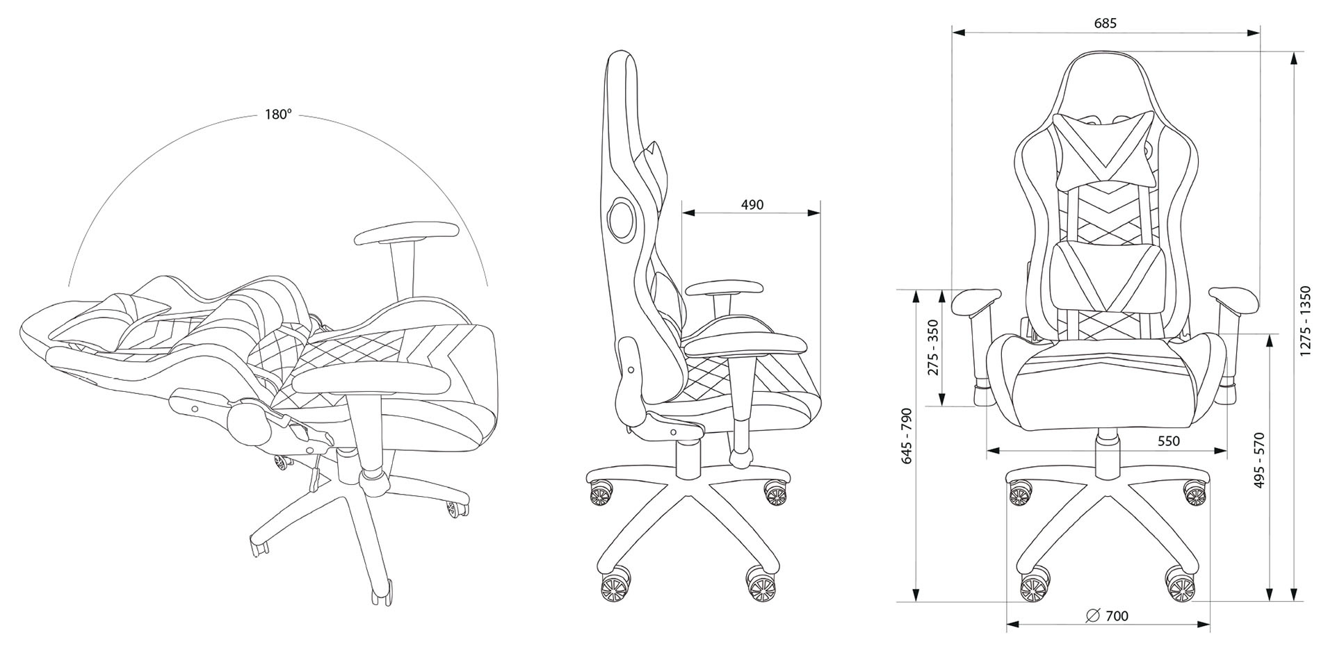 | Высота кресла / стула MIN | 1275 мм |