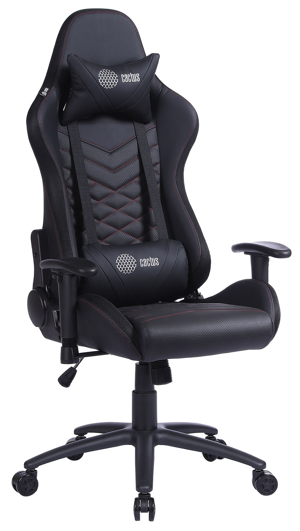 Кресло игровое Cactus CS-CHR-0099BLR с RGB-подсветкой черный/красный эко.кожа с подголов. крестов. сталь