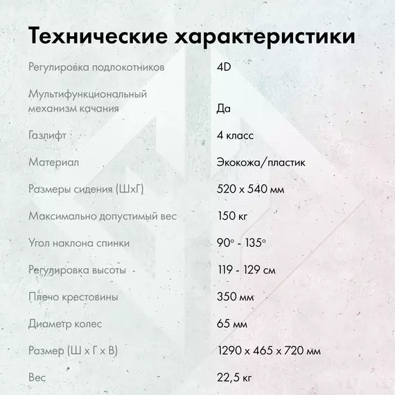 | Тип подлокотников | регулируемые 4D |
